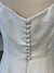 Some pilling and snags on fabric, some spots on bodice, around zipper, & skirt, some marks on train, missing internal corset laces