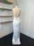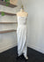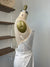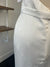 Ivory silk/crepe fabric, sheath style gown, low open back with cowl front neckline